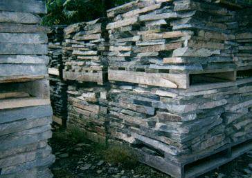 Flagstone rubble with no sawed edges, 6" to 2 feet in diameter. Thickness of 1" to 2".