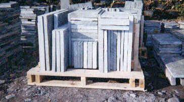 Flat stone, cut to size. Typically 1" and 1 1/2" thickness. Available in other thicknesses. Varying color.