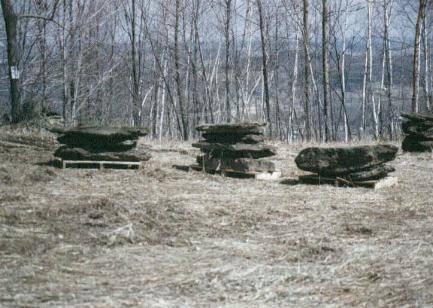 Shape ranges from flat to boulder with accent moss and fossil deposits. Size varies from two-man (100 lb.) to large landscape stones (3,000 lb.).